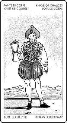 Впечатлительный молодой Паж Кубков – персонификация воды и олицетворение подвижных глубинных течений, связывающих масть Кубков с миром эмоций. Другими словами, Паж Кубков – это графический пример того, как вода может принять человеческий облик.