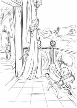 Рабочий рисунок карты Королева мечей.