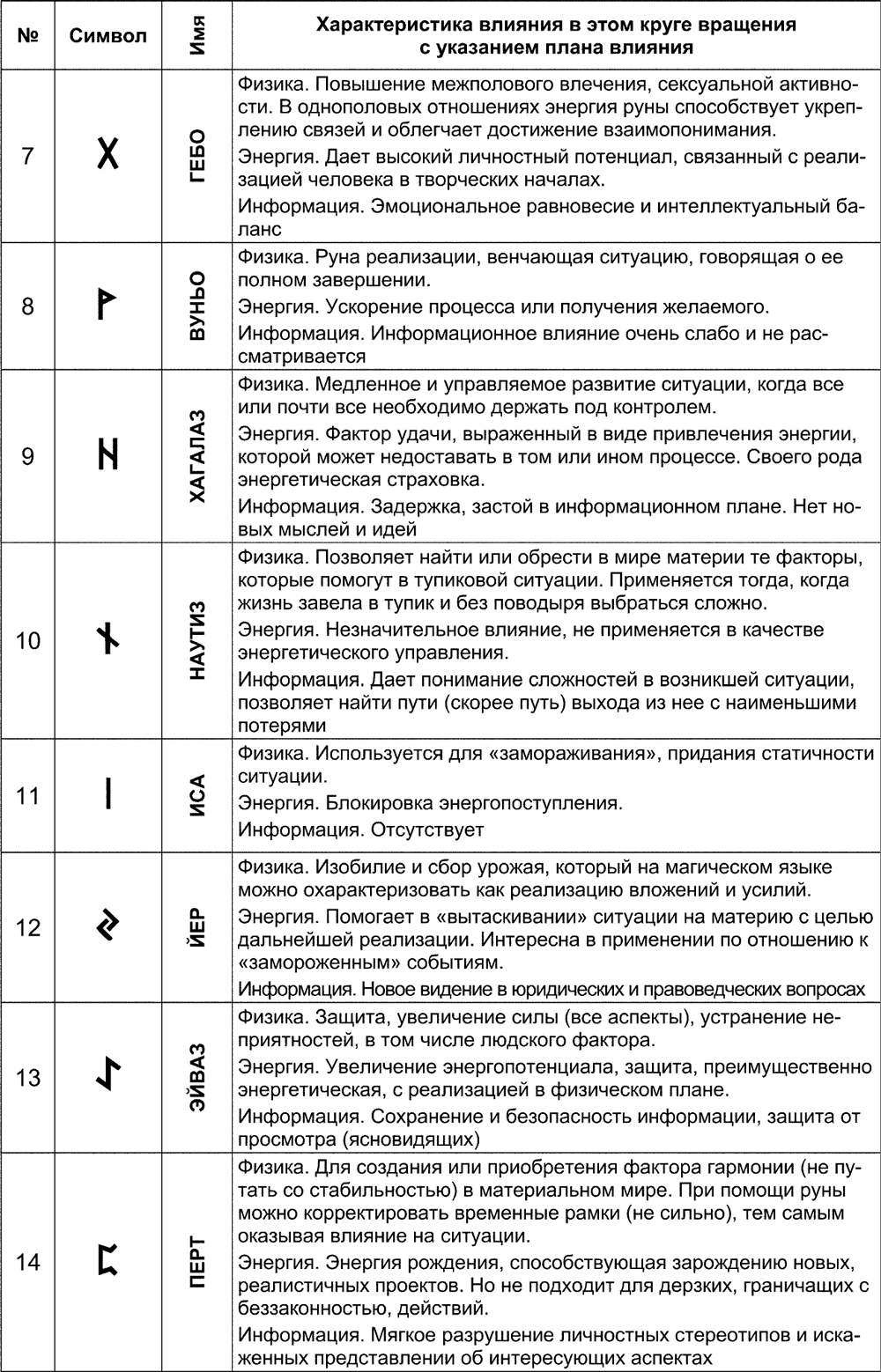 Значения рун в магических практиках отличаются от значения рун, применяемых в предсказании. Давайте ознакомимся с тем, какие влияния будет оказывать та или иная руна, применяемая в магии.