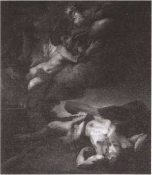 Душа Авеля возносится на небо. Картина А. Балестры (XVIII в.). А тело убитого и вытекшая из него кровь остаются на земле.